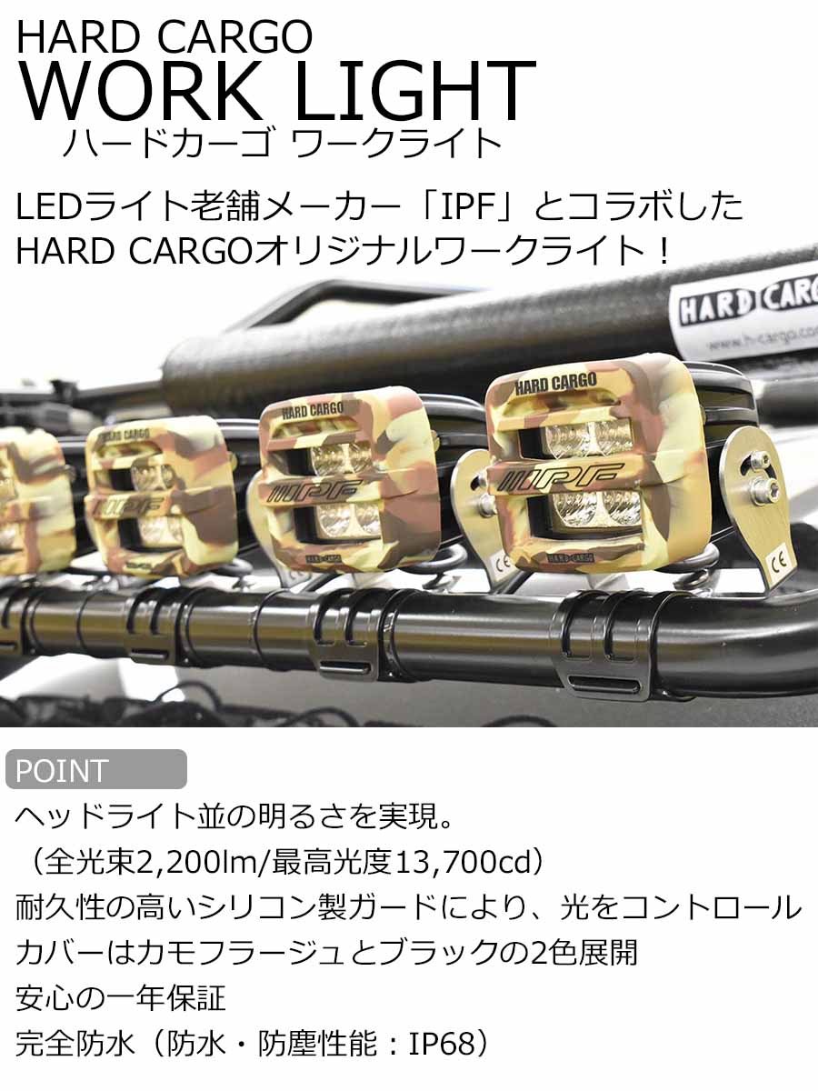 【500円クーポン】【ハードカーゴ ワークライト 1個】ハードカーゴ ワークライト LEDライト老舗メーカー「IPF」コラボ オリジナルワークライト ブラック カモフラージュ カスタム パーツ HARD CARGO HC-511-HC-512