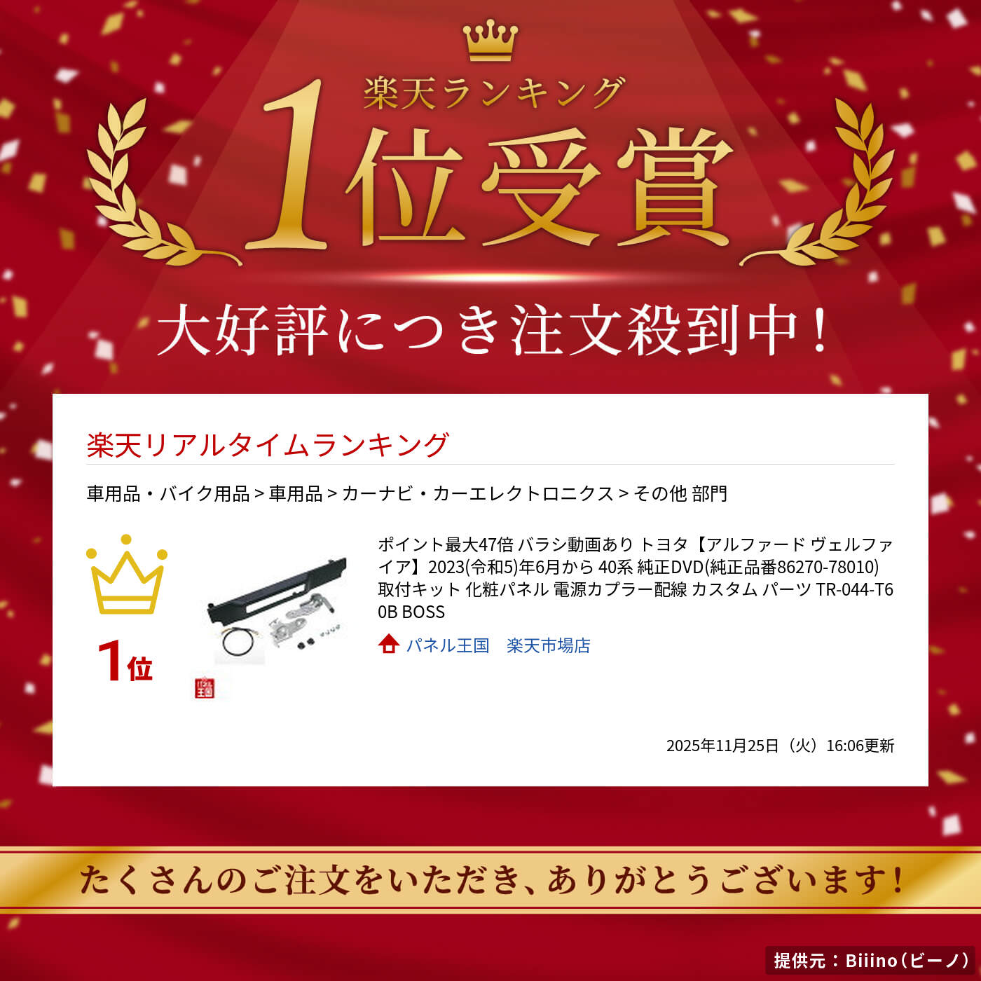 バラシ動画あり トヨタ【アルファード ヴェルファイア】2023(令和5)年6月から 40系 純正DVD(純正品番86270-78010)取付キット 化粧パネル 電源カプラー配線 カスタム パーツ TR-044-T60B BOSS