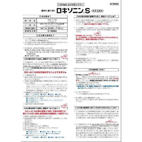 【セルフメディケーション税制対象商品】 ※ご注文後、薬剤師からのメールをご確認ください※ 平日・土曜日10時までのご注文:当日中にメールをお送りします。 上記以降のご注文:翌営業日にメールをお送りします。 メール内のURLから承諾操作を行っていただいた後に商品を発送いたします。 追加の問診が必要な場合は、メールにご返信ください。 本商品は、薬剤師の問診・診断の結果、「販売可」と判断された場合に発送されます。 【送料無料・メール便】ロキソニンS 12錠 鎮痛剤 痛み止め 「ロキソニンS 12錠」は、痛みに速く効く解熱鎮痛薬です。解熱鎮痛成分・ロキソプロフェンナトリウム水和物が、痛みや熱の原因物質(プロスタグランジン)をすばやく抑え、すぐれた鎮痛効果・解熱効果を発揮します。からだにやさしいプロドラッグ製剤で、胃への負担を軽減しています。眠くなる成分を含んでおらず、1回1錠でよく効きます。のみやすい小型錠です。医薬品。 ロキソニンS 12錠 ------------------ 医薬品の使用期限 1年以上の使用期限のものを販売しております。 ------------------ 商品説明 「ロキソニンS 12錠」は、痛みに速く効く解熱鎮痛薬です。解熱鎮痛成分・ロキソプロフェンナトリウム水和物が、痛みや熱の原因物質(プロスタグランジン)をすばやく抑え、すぐれた鎮痛効果・解熱効果を発揮します。からだにやさしいプロドラッグ製剤で、胃への負担を軽減しています。眠くなる成分を含んでおらず、1回1錠でよく効きます。のみやすい小型錠です。医薬品。 使用上の注意●してはいけないこと(守らないと現在の症状が悪化したり、副作用が起こりやすくなります)1.次の人は服用しないで下さい(1)本剤によるアレルギー症状を起こしたことがある人(2)本剤又は他の解熱鎮痛薬、かぜ薬を服用してぜんそくを起こしたことがある人(3)15歳未満の小児(4)医療機関で次の治療を受けている人 胃・十二指腸潰瘍、肝臓病、腎臓病、心臓病(5)医師から赤血球数が少ない(貧血)、血小板数が少ない(血が止まりにくい、血が出やすい)、白血球数が少ない等の血液異常(血液の病気)を指摘されている人(6)出産予定日12週以内の妊婦2.本剤を服用している間は、次のいずれの医薬品も服用しないで下さい 他の解熱鎮痛薬、かぜ薬、鎮静薬3.服用時は飲酒しないで下さい4.長期連用しないで下さい●相談すること1.次の人は服用前に医師、歯科医師又は薬剤師に相談して下さい(1)医師又は歯科医師の治療を受けている人(2)妊婦又は妊娠していると思われる人(3)授乳中の人(4)高齢者(5)本人又は家族がアレルギー体質の人(6)薬によりアレルギー症状を起こしたことがある人(7)次の診断を受けた人 気管支ぜんそく、潰瘍性大腸炎、クローン病、全身性エリテマトーデス、混合性結合組織病(8)次の病気にかかったことがある人 胃・十二指腸潰瘍、肝臓病、腎臓病、血液の病気2.次の場合は、直ちに服用を中止し、添付文書を持って医師、歯科医師又は薬剤師に相談して下さい(1)本剤のような解熱鎮痛薬を服用後、過度の体温低下、虚脱(力が出ない)、四肢冷却(手足が冷たい)などの症状があらわれることがあります。その場合には、直ちに服用を中止し、医師、歯科医師又は薬剤師 に相談して下さい(2) 服用後、消化性潰瘍、むくみがあらわれた場合また、まれに消化管出血(血を吐く、吐き気・嘔吐、腹痛、黒いタール状の便、血便等があらわれる)、消化管穿孔(消化管に穴があくこと。吐き気・嘔吐、激しい腹痛等があらわれる)、小腸・大腸の狭窄・閉塞(吐き気・嘔吐、腹痛、腹部膨満等があらわれる)の重篤な症状が起こることがあります。その場合は直ちに医師の診療を受けて下さい。(3)服用後、次の症状があらわれた場合・皮膚:発疹・発赤、かゆみ・消化器:腹痛、胃部不快感、食欲不振、悪心・嘔吐、腹部膨満、胸やけ、口内炎、消化不良・循環器:血圧上昇、動悸・精神神経系:眠気、しびれ、めまい、頭痛・その他:胸痛、倦怠感、顔面のほてり、発熱、貧血、血尿まれに下記の重篤な症状が起こることがあります。その場合は直ちに医師の診療を受けて下さい・ショック(アナフィラキシー):服用後すぐにじんましん、浮腫、胸苦しさ等とともに、顔色が青白くなり、手足が冷たくなり、冷や汗、息苦しさ等があらわれる・血液障害:のどの痛み、発熱、全身のだるさ、顔やまぶたのうらが白っぽくなる、出血しやすくなる(歯茎の出血、鼻血等)、青あざができる(押しても色が消えない)等があらわれる・皮膚粘膜眼症候群(スティーブンス・ジョンソン症候群)・中毒性表皮壊死症(ライエル症候群):高熱を伴って、発疹・発赤、火傷様の水ぶくれ等の激しい症状が、全身の皮ふ、口や目の粘膜にあらわれる・腎機能障害:尿量が減り、全身のむくみ及びこれらに伴って息苦しさ、だるさ、悪心・嘔吐、血尿・蛋白尿等があらわれる・うっ血性心不全:全身のだるさ、動悸、息切れ、胸部の不快感、胸が痛む、めまい、失神等があらわれる・間質性肺炎:空せき(た