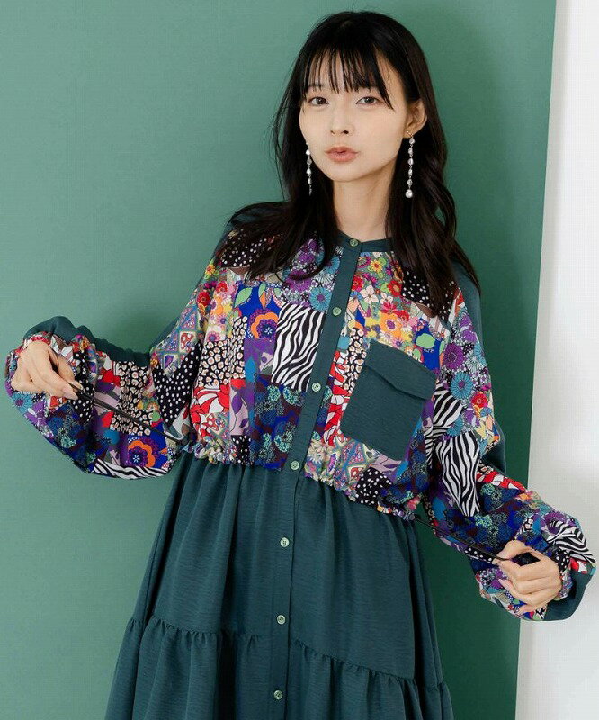 ★新作★【ScoLar スカラー】153679 総柄ワッシャーティアードシャツワンピース カジュアル レトロ 原宿系 個性的【パッパドゥドゥ】