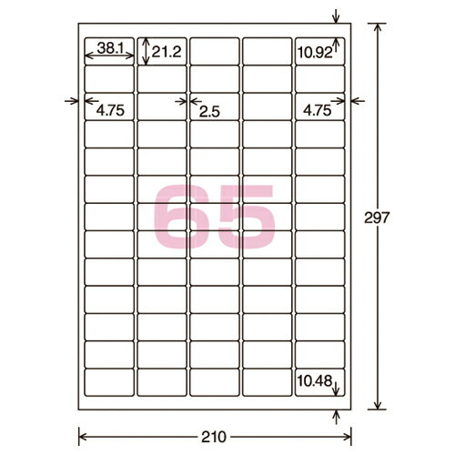 ●耐水・耐久性に優れたラベル ●サイズ/A4 ●カット内容/65面(角丸) ●ラベルサイズ/ヨコ38.1×タテ21.2mm ●色/白 ●紙厚/ラベル本体:0.12mm(総厚222g/平米相当・0.23mm) ●白色度82%程度(ISO) ●材質/PETフィルム ●用紙厚さ222g/平米以上に対応する機種でお使いください。 ●用紙種類が選択できる機種で「ラベル紙」または「厚紙」に設定し、印刷してください。 ●15枚入●耐水・耐久性に優れたラベル ●サイズ/A4 ●カット内容/65面(角丸) ●ラベルサイズ/ヨコ38.1×タテ21.2mm ●色/白 ●紙厚/ラベル本体:0.12mm(総厚222g/平米相当・0.23mm) ●白色度82%程度(ISO) ●材質/PETフィルム ●用紙厚さ222g/平米以上に対応する機種でお使いください。 ●用紙種類が選択できる機種で「ラベル紙」または「厚紙」に設定し、印刷してください。 ●15枚入