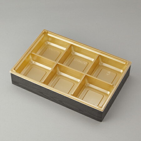 使い捨て 高級弁当容器 ワン折重 90×60黒焼杉/J-6金底/共蓋 (100セット) 高級弁当 ワンオリ 使い捨て 弁当容器 業務用 6つ仕切り 六仕切り
