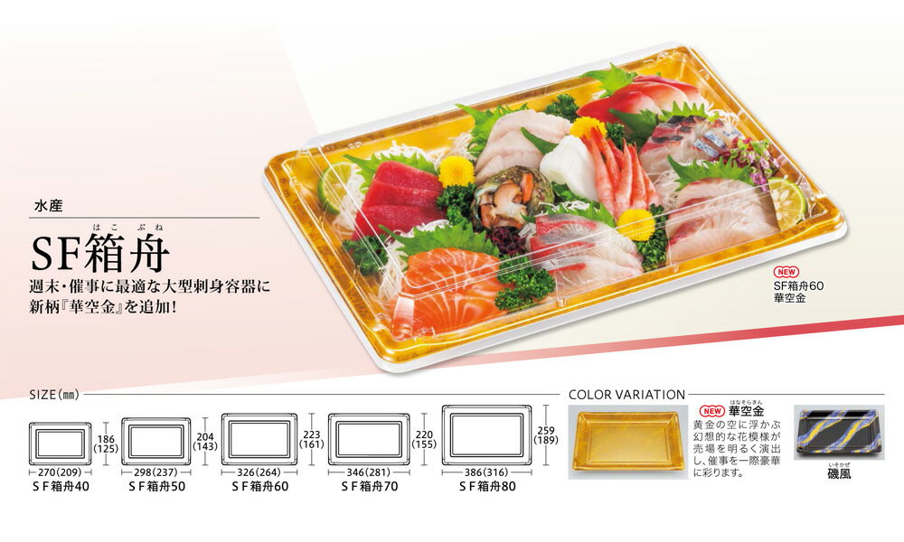 刺身容器 SF箱舟50磯風本体・嵌合蓋セット [50枚セット] 週末 催事 スーパー 大型刺身容器 水産 使い捨て