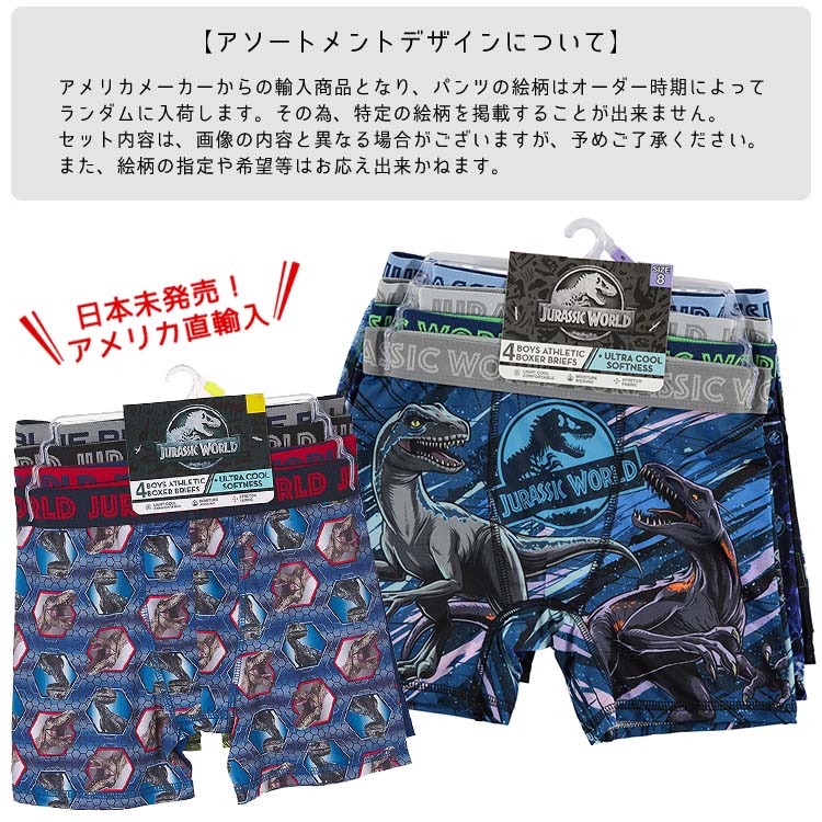 送料無料/ ボクサー ブリーフ セット 子供 ジュラシック ワールド 4枚組み 100-160cm ウルトラクール 男児 キッズ 下着 子ども用 パンツ トランクス