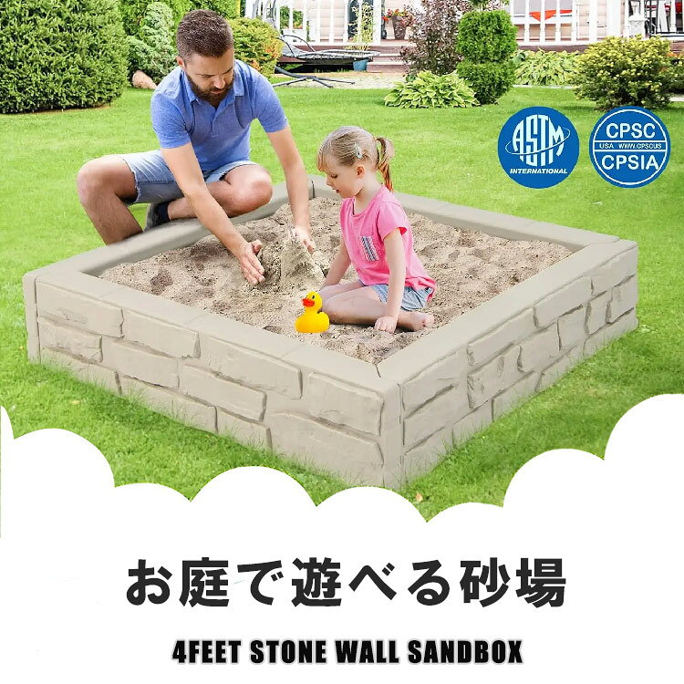 【レビュー特典あり!】砂場 蓋付き サンドボックス ストーンウォール 砂場枠 カバー シート 四角形 プラスチック製 120x120x25cm 家庭用 大型遊具 すなば フレーム プランター /配送区分A