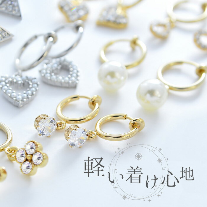 全品対象クーポン配布中! イヤリング 痛くない 落ちにくい ノンホールピアス ノンホール フープ 揺れる パール キュービック ジルコニア 三角 ハート ラインストーン ピアスに見える かわいい おしゃれ ノンホールイヤリング バネ式 挟むだけ プレゼント 誕生日 クリスマス