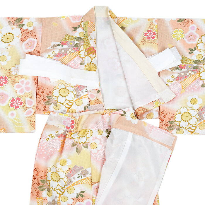 【レンタル】ベビー着物 二部式被布セット 黄色 オレンジ 桜 束ね熨斗 梅 セパレート 二部式 女の子 1歳前後 80cm ひな祭り 桃の節句 誕生日 着せ付け簡単 和装 赤ちゃん お宮参り お食い初め 夏祭り 足袋セット 着物 写真 初節句 021 往復送料無料 【きものレンタル】