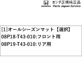 ■只今、メーカーの出荷量増大に伴い、納期が大幅に遅延しております。■解消時期が未定のため、順次入荷次第の発送となります。■通常納期より長らくお待たせしますが何卒ご理解ご容赦賜りますようお願い申し上げます。製品品番・08P18-T43-010 or 08P19-T43-010対応車種メーカー車名:ホンダ シビックタイプR型式:FL5年式:2023年11月〜※グレード・仕様要確認対応車種(対応年式含む)[TYPER]商品構成[1]オールシーズンマット【選択】08P18-T43-010:フロント用08P19-T43-010:リア用材質/特徴縁高タイプ/樹脂製/ブラック注意事項※フロント用:運転席側のマットは、必ず専用ホルダーに固定して使用してください。※リア用:リア席中央用のマットはありません。※フロアカーペットマットとの同時装着が可能です。*適合情報はメーカーの最新公式カタログをご確認ください。ご不明な場合はお調べ致します。*取付車両の仕様によっては取り付けができない場合がございます。*商品画像はイメージです。実際の商品と異なって見える場合がございます。*取寄の場合、長期欠品または販売終了となる場合がございます。*純正アクセサリーは、お客様都合での交換・返品・キャンセルをお断りさせて頂いております。(こちら側に不備がある場合は対応しております。)*大型商品の場合、別途送料が掛かる場合がございます。その際は別途ご連絡差し上げます。*メーカー価格改定により販売価格、販売単位が変更となる場合がございます。その際は別途ご連絡差し上げます。*取付に加工が必要な場合がございます。専門業者にご依頼の上お取り付けください。*選択の組み合わせによっては対応製品がない場合がございます。