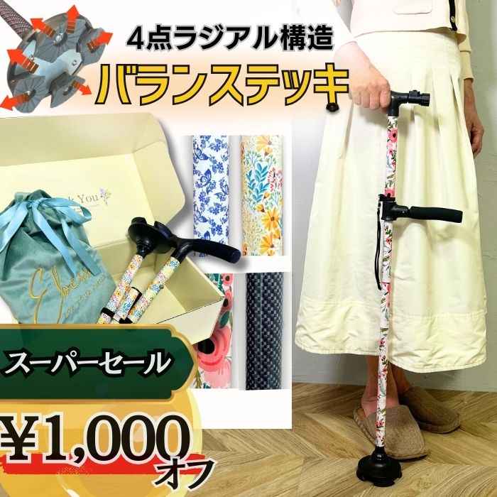 【超軽量らく楽ステッキ ハイブリッド4】はコチラ★ 商品名 安心ステッキ さんさ サイズ (約)79〜102cm (10段階調整) 重量 (約)300g 素材 杖本体:アルミ グリップ:天然木(カエデ) 先ゴム:合成ゴム 製造国 台湾 【 カラー/JAN 】 白花柄:4589552070014 青チェック柄:4589552070021 紫花柄:4589552070038 商品特徴一覧 安心ステッキさんさ:お年寄りなどにお勧めの3点杖:階段でも砂利でも雪にも:敬老の日のプレゼントにも:雑貨:安心ステッキさんさ:お年寄りなどにお勧めの3点杖:階段でも砂利でも雪にも:敬老の日のプレゼントにも:雑貨:通信販売:買う:販売:購入:お店:売ってる:ショッピング 広告文責 (有)パルス 048-551-7965 この商品の意見を書き込む ↑クリックしてね。是非、いろんな意見を下さい♪ (この書き込みはお客様全員が見ることが出来ます♪) 広告文責 (有)パルス 048-551-7965 記載【安心ステッキさんさ】お年寄りなどにお勧めの3点杖 階段でも砂利でも雪にも敬老の日のプレゼントにも 雑貨