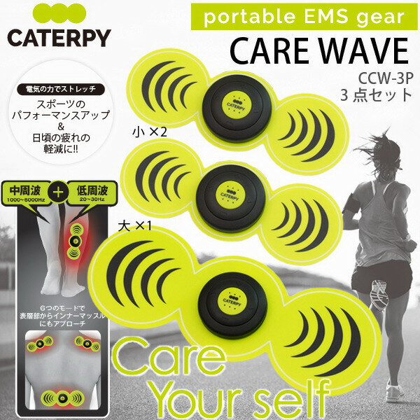 【ツインズ CARE WAVE 3個セット】ダイエット EMS 器具 ジェルシート 運動 筋肉 ケア 商品紹介 スポーツ愛好家向け、家庭用EMS機器 CARE WAVE(ケアウェーブ)は日頃運動をする方にぴったりの家庭用EMSです。 運動前に使うと動きをサポート、運動後はケアに。 各関節にまつわる主要な筋肉に働きかけ、運動前に使用すれば動きをサポート。 運動後にも使用する事で、ケアします。 また、日常生活においても起床後、就寝前に定期的に使用して頂くことで、日頃のケアが出来ます。 サイズ・重量 製品サイズ本体:約φ45×H13mmジェルシート小:横幅150×縦幅55×厚さ14mmジェルシート大:横幅200×縦幅74×厚さ14mm製品重量本体:約15g (本体+電池)ジェルシート小:約22gジェルシート大:約26g 商品説明 材質 本体:ABS樹脂ジェルシート PET/カーボン電源 コイン型リチウム電池 CR2032、DC 3.0V連続使用時間 約120分 動作内容、使用環境によって変化します。出力周波数 中周波:約1000〜6000Hz低周波 約20〜30Hzタイマー 約10分自動オフ付属品 CARE WAVE 小:2点、CARE WAVE 大:1点、保管シート、収納ポーチ、テスト用コイン型リチウム電池(CR2032)×6個(予備含む) 広告文責 (有)パルス 048-551-7965 『通常5-12営業日前後に出荷の予定ですが 欠品やメーカー終了の可能性もあり、その場合は 別途メールにてご連絡いたします』【ツインズ CARE WAVE 3個セット】ダイエット EMS 器具 ジェルシート 運動 筋肉 ケア