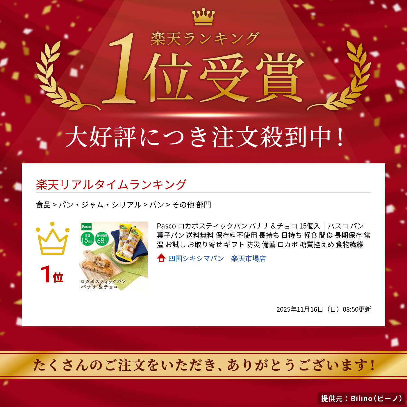 【15%OFFクーポン配布中(11/20 20:00〜)】Pasco ロカボスティックパン バナナ&チョコ 15個入|パスコ パン 菓子パン 送料無料 保存料不使用 長持ち 日持ち 軽食 間食 長期保存 常温 お試し お取り寄せ ギフト 防災 備蓄 ロカボ 糖質控えめ 食物繊維