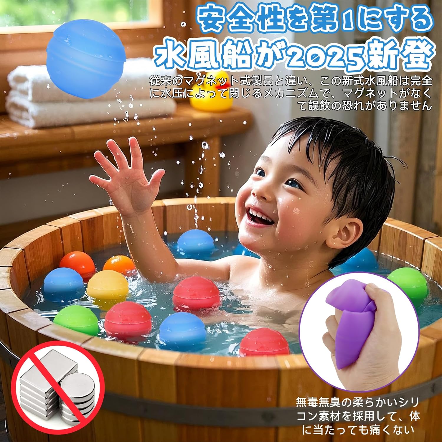 商品情報【繰り返し使える水風船&割れない】進化した水風船が2025新登場!従来の水風船は破裂しやすく、頻繁に交換する必要がある一方で、シリコン製の水風船は閉鎖構造によって反復的に水分を注入して使用することができます。頑丈な構造により、数千回の使用に耐え、破れたり裂けたりすることはありません。従来の水風船のように一度使ったら捨てるのではなく、環境に優しく持続可能な選択肢です。これにより、一個の水風船が何度も使えるようになり、ごみの発生が大幅に減少し、環境保護のトレンドに合致し、頻繁に購入する必要もなくなって長期的にコストを節約することができます。【マグネットなし&柔らかいシリコン製&安全使用】普通のマグネット式の水風船は長時間の使用や外部からの力で磁石が外れる可能性があり、特に子供にとって誤飲の危険もあります。従って、弊社の水風船は使用の安全性を第1に考慮して、磁石を1つも使用せず、完全に水圧によって自動的に閉じるメカニズムを採用しております。これにより、誤飲のリスクがなくなり、全体的な安全性を確保します。そのほか、スプラッシュボール本体は柔らかいシリコン素材で、無毒無臭もメリットを持つと同時に、体に当たっても痛くなくて体を傷つけることはありません。【簡単に充填&使用簡単】この水遊びおもちゃは、手間のかからない充填メカニズムを採用しています。ボールを水に浸すだけで、水圧によって自動的に水が充填されます。複雑な手順や追加の工具は必要なく、子供から大人まで簡単に使える便利さが特徴です。使いやすいデザインで、毎回シームレスな体験を提供します。手で握ったり、遊んでいる間にぶつかったりすると水風船が簡単に開くし、爽快な水しぶきを楽しめます。開いた後もすぐに再充填でき、何度でも繰り返し使えます。【子供向け&夏祭りの最高のギフト&様々なシーンで大活躍】このスプラッシュボールは、水遊びおもちゃや外遊び玩具として夏のさまざまなシーンに最適です!家族で庭で遊んだり、プールパーティー、ビーチでの外出、キャンプ旅行、お風呂玩具などで使えます。また、子供の誕生日や子供の日、幼稚園の夏祭りの素晴らしい贈り物としてもぴったりです。耐久性があり、再利用可能で環境に優しいため、学校行事やチームビルディング活動、さらにはアウトドアウェディングにも最適です。楽しい贈り物や夏の集まりを盛り上げる方法をお探しの方には、この水ボールが必須アイテムです!【12個セット&家族や友達みんなで水遊びする】この水風船セットは12個見た目も可愛い水風船が入り、家族や友達と共有するのに最適です。付属の収納袋で持ち運びや整理が簡単になり、いつでもどこでもすぐに遊べるようになり、屋外でのアクティビティに簡単に持ち運びや整理ができます。家族や友達と一緒に楽しむのに最適で、夏の暑さを和らげる水遊びにぴったりです。家族の絆を深め、笑いを誘うだけでなく、友達同士でリラックスして遊ぶ楽しい方法を提供します。また、屋外活動を促進することでエアコンに頼る時間を減らし、より健康的でアクティブなライフスタイルをサポートします。庭、プール、ビーチ、公園、キャンプなど、さまざまな場所で使えるこのセットは、夏の暑さをしのぎ、忘れられない思い出を作るための必須アイテムです!スプラッシュボール プールおもちゃ 水遊びグッズ 繰り返し使える水風船 大量 シリコン製 安全 柔らかい 痛みなし 外遊び玩具 お風呂玩具 水風船合戦 夏祭り 夏休み 縁日 お祭り 子供向け 家庭用 小学生 使用簡単 夏まつりのギフト 水風船 割れない 繰り返し 子供向け水遊びおもちゃ【2025年新式&マグネットなくて誤飲の恐れなし】 スプラッシュボール プールおもちゃ 水遊びグッズ 繰り返し使える水風船 大量 シリコン 【繰り返し使える水風船&割れない】進化した水風船が2025新登場!従来の水風船は破裂しやすく、頻繁に交換する必要がある一方で、シリコン製の水風船は閉鎖構造によって反復的に水分を注入して使用することができます。頑丈な構造により、数千回の使用に耐え、破れたり裂けたりすることはありません。従来の水風船のように一度使ったら捨てるのではなく、環境に優しく持続可能な選択肢です。これにより、一個の水風船が何度も使えるようになり、ごみの発生が大幅に減少し、環境保護のトレンドに合致し、頻繁に購入する必要もなくなって長期的にコストを節約することができます。【マグネットなし&柔らかいシリコン製&安全使用】普通のマグネット式の水風船は長時間の使用や外部からの力で磁石が外れる可能性があり、特に子供にとって誤飲の危険もあります。従って、弊社の水風船は使用の安全性を第1に考慮して、磁石を1つも使用せず、完全に水圧によって自動的に閉じるメカニズムを採用しております。これにより、誤飲のリスクがなくなり、全体的な安全性を確保します。そのほか、スプラッ