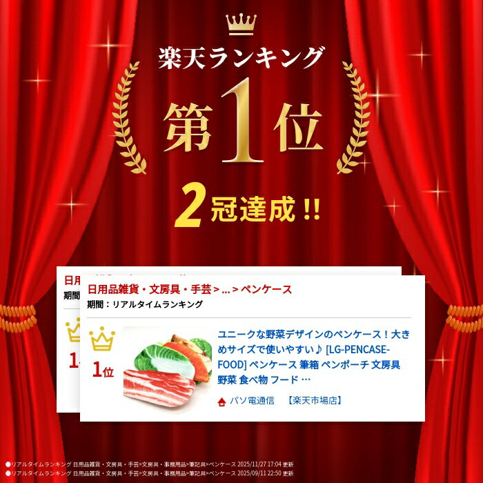 送料規定・納期はこちらでご確認下さい。 ご注文処理の状況によりキャンセルや、 ご注文内容修正へご対応出来ない場合がございます。 ☆食べ物ペンケース 【主な特徴】 ■リアルなデザイン 本物そっくりのデザインポーチで、周りの人もびっくり! 注目度アップのアイテムです。 ■幅広く使える ペンケースとしてもお使いいただけますが、ティッシュやハンカチ類。 コスメや小物類もまとめることが出来ます。 しっかりとした生地なのに、厚みがないのでサッとカバンにしまえます。 ■プレゼントにおすすめ あげる方も、もらう方も思わず笑顔になる。そんな魅力的なペンケースです。 使いやすく、インパクトあるデザイン。プレゼントにはもってこいですね♪ 【商品仕様】 ■カラー ・にんじん ・たけのこ ・ベーコン ・ゴーヤ ・白菜 ■サイズ にんじん:縦32×横11×厚さ1 たけのこ:縦27cm×横15cm×厚さ1cm ベーコン:縦25cm×横10cm×厚さ1cm ゴーヤ:縦25cm×横10.5cm×厚さ1cm 白菜:縦24.5cm×横12cm×厚さ1cm ■重さ 人参:24.2g たけのこ:27.2g ベーコン:23.8g ゴーヤ:22.2g 白菜:26.4g ※各表記サイズは 約 です。