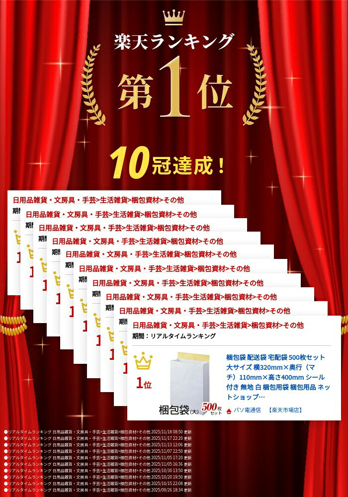 [返品不可] 送料規定・納期はこちらでご確認下さい。★人気のホワイト宅配袋(大サイズ)です。 【主な特長】 ・ 50万枚以上の販売実績 ・ 個人事業主様・法人様に愛されています!業者様も大歓迎! ・ 佐川急便 ヤマト運輸 日本郵便 各社運送業者対応済み ・ MAED IN JAPAN 安心の日本製!メイドインジャパン(過去の実績の中で底が抜けるトラブルは一切ございません) ・ テープ付き 袋を閉じるテープ付きで作業効率アップ(シールを剥がすだけで袋を閉じれる。作業効率アップ、コスト削減) ・ 透けない袋素材 ・ 白色 無地 ・ アパレル 家電 文房具 雑貨 等幅広く使える ・ 各種サイズを取り揃え ・ ネットショッピング運営には欠かせない梱包用袋 ・ 封かん作業が手軽にできる、ベロ部分剥離紙付き。 ・ コスト削減 (1)価格が安い (2)テープ付きで効率アップ (3)高品質でトラブル激減 ・ 厚い しっかりとした厚みがあります。 【検索ワード】 ネットショップ ネコポス 洋服 服 子供服 子ども服 アクセサリー 雑貨 ハンドメイド ネット通販 店舗運営 楽天 楽天市場 Yahoo! Yahoo!ショッピング ヤフー ヤフーショッピング Amazon せどり アマゾン メール便 梱包材 梱包袋 宅急便 宅急便袋 宅配便 宅配 宅配袋 宅配便袋 A4 A4サイズ B5 B5サイズ 【検索外のワード】 緩衝材 プチプチ ビニール袋 段ボール ダンボール 100円ショップ