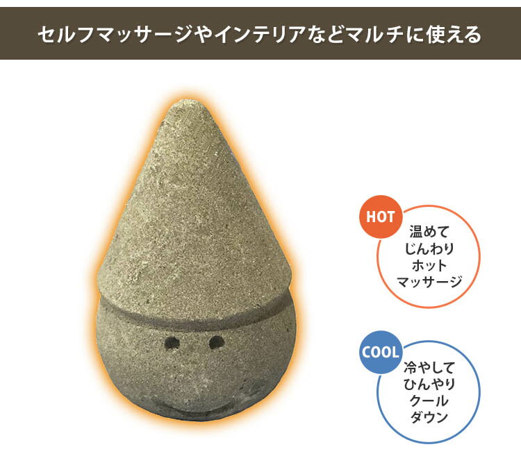 ITEM SPEC メーカー・ブランド HUKKA DESIGN(フッカデザイン) 商品名 HUKKA DESIGN フッカデザイン ジャイアント トントゥ ジャンル サウナストーン カラー・デザイン ターボ(TKR-HUK-GT-TB)エリ(TKR-HUK-GT-ER) 素材 フィンランド産カレリアンソープストーン 重量 1480g 生産国 フィンランド 注意事項 ※最初白い粉が商品についていますが、これはソープストーンを構成している天然のタルクです。一度熱湯で洗うことで粉が出にくくなります。※使用前に製品の状態をよく確認し、粉や異物が付着していないか確認してください。※目に粉などが入った場合には、目をこすらずにすみやかに水で洗い流してください。※電子レンジを使用しないでください。※通常のご使用方法でソープストーンが目減りしたりすることはありませんが、高い所から落としたり、衝撃があると壊れたり、ヒビが入ったりすることがあります。※【ストーン表面にある傷や模様】 ソープストーンは比較的やわらかい石のため、傷がつきやすい特性もあります。 又傷や模様自体がソープストーンそのものの模様であり、太古の自然の産物ですのでお楽しみください。※複数店舗を運営しておりますため、ご注文の入れ違い等で欠品などになってしまう場合がございます。万が一、発送が遅れる場合は、ご注文受付当日中にご案内差し上げます。誠に恐れ入りますがご了承くださいますよう、お願い申し上げます。※ご予約・お取り寄せ商品は、ご注文受付後にお客様ご注文分としてメーカーへ発注を致します為、基本的にキャンセルやご返品はお受けできません。※実際の商品の色になるべく近いかたちで掲載しておりますが、モニターの違いなどで実際の商品と色味が異なる場合がございます。予めご了承ください。※全面に柄がプリント、刺繍、織り等で施されている商品は、生地をランダムに裁断するため、柄の出方に個体差が生じます。出来上がりはひとつひとつ異なりますので、予めご了承ください。※商品に印字されているロゴおよび内側の布の色など、製品の仕様が予告なく変更になる場合がございます。あらかじめご了承ください。HUKKA DESIGN フッカデザイン ジャイアント トントゥ 28億年前にフィンランドで生まれた天然石カレリアン・ソープストーン。 世界に数多くのソープストーンがある中で、フィンランドで生成されたカレリアン・ソープストーンは、極めて高密度で、熱や冷たさを長時間蓄える性質を持っています。 フィンランドでは昔から人間と妖精が共に住んでいるという言い伝えがあります。 帽子をかぶった妖精達が、人間が住む家や小屋に住み込み、人間達がいつも幸せに暮らせるよう、災難からも守ってくれていると考えられています。 インテリアオーナメントとしてはもちろん、そのソープストーンの特徴生かし、お顔や身体の筋肉を温めたり、冷やしたりしながらほぐしてリラックスすることもできます。 特徴 ●極めて高密度のため、耐水性が高く、においや味、液体がしみこむこともなく、清潔に半永久的に使い続けることができます。 ●優れた熱伝導率を有し、耐熱性をもつため、ソープストーン構造全体にバランスよく迅速に熱を伝えることができ、また熱を密度が高いがゆえ、温度を長く保温する効果があります。 自分の気持ちの良い圧をかけてリラックス。 ポイント(角)やカーブはなめらかに磨かれ、顔だけではなく、肩や上半身、下半身をほぐしたり、沢山のセルフマッサージに活躍します。 温める際はお湯を沸かした中にしばらくストーンを置いて、人肌になったら使い時。疲れた部分をじんわり温めてリラックスできます。朝すっきりとむくみをとりたい時には冷蔵庫にスタンバイさせておけばいつでもすっきりとクールな冷感を楽しめます。 ソープストーンは密度が非常に高く、オイルや皮脂の汚れも浸透しにくいため、洗えばいつでも綺麗に清潔に使い続けていただけます。 使用後は家庭用洗剤にて洗浄。食洗機で洗うことも可能です。 ※温める際に電子レンジは使用できません。 ソープストーン使用の大きなサウナストーン。 HUKKA DESIGN フッカデザイン ポイントマッサージストーン顔・ボディをじんわり温めたり冷やしたりしてリラックス!保温性に優れたフィンランド製ソープストーン使用。 HUKKA DESIGN SOLEJOY mini フットケアストーンボールでコロコロ足裏マッサージ!温めてポカポカフットケア。 ■KEY WORD:フッカ/デザイン/HUKKA/DESIGN/ジャイアントサイズ/ジャイアント/大きい/BIG/ビッグ/GIANT/TONTTU/トントゥ/マッサージストーン/フィンランド/北欧/ストーン/ソープストーン/ボディケア/ボディ/ケア/ボディマッサージャー/ボディマッサージ/マッサージ器/器具/マッサージボール/マッサージャー/ボール/ストーンボール/サウナ/SAUNA/お風呂サウナ/サウナー/サウナ愛好家/ミストサウナ/銭湯/サウナマニア/サウナハット/サ道/整う/ととのう/サ活/サウナ道/メンズ/レディース/ユニセックス/男女兼用/サウナ中/球/玉/球体