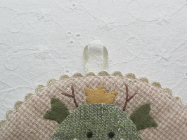 出来上がりサイズ直径 約16センチ素材綿100%特徴●そのままかべ飾りとして使っていただいても、土台のキルトと組み合わせ飾っていただくのもおすすめです。キットに含まれているもの生地 フエルト 刺繍糸 レース リボン キルト芯 山道テープ レシピ 表紙注意事項●商品の撮影には最大限注意を払っておりますが、閲覧時のモニター環境によりましては実際の商品と若干違うお色味に映ることもございます。かわいい辰のアップリケプレートです。細かいところはフエルトでアップリケします。アップリケ土台のミニタペストリーと組み合わせて飾っていただけます。土台のタペストリーは別売りです。裏側です。表側と裏側で山道テープをはさんでいます。