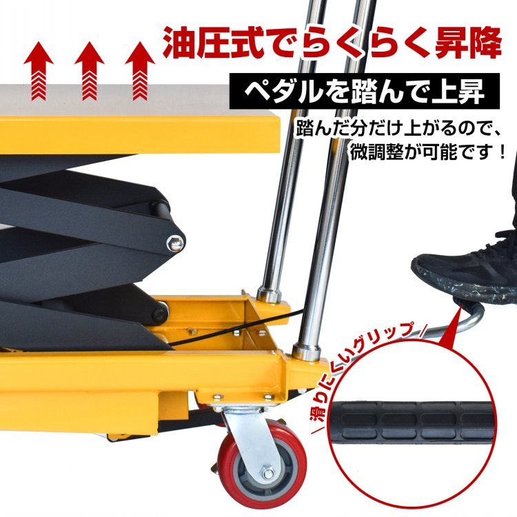 【30日〜全品5%オフCP】リフトテーブル 油圧式 耐荷重350kg 台車 油圧式昇降台車 リフトアップ テーブルカート ハンドリフター キャスター 昇降台 油圧 リフト 作業台 運搬 荷物 積み下ろし sg122h