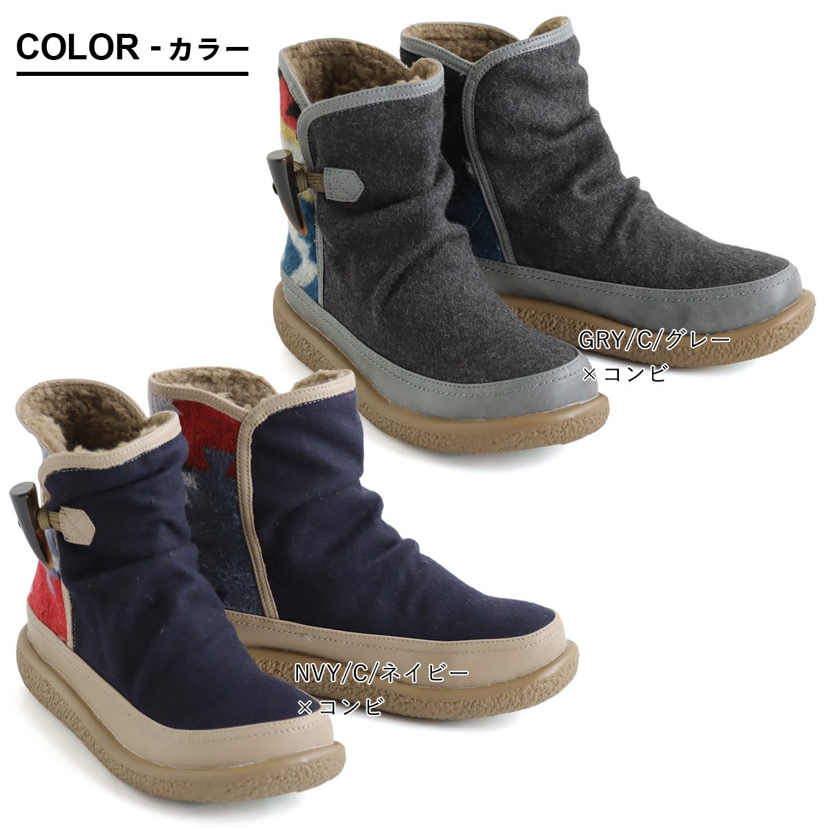× × × ギフト対応 TOP カラー 詳細 サイズ カートへ ↑上へ ブーツ ミドル丈 暖かい 裏ボア レディース 軽い 片手で履ける ゴム トグルボタン ネイティブ柄 民族柄 異素材切り替え クッションインソール レディースブーツ 履きやすい 歩きやすい 疲れにくい 冬 冬靴 カジュアル パティ r180720002 [商品説明] ・今季このブーツを販売するのは当店だけっ! ・足首からつま先まで、ふわふわのボアが入ったミドル丈ブーツ。 ・ネイティブ柄×無地×PUレザーの印象的な異素材「配色」切替。 ・カワイイのにカッコいいところが、このブーツ最大の人気ポイントで、コーディネートの主役に◎ ・この見た目で、片手でスポッっと脱ぎ履き出来る、ゴム紐トグルボタン。 ・広めの履き口×ゆったりサイズで、玄関先での時間も短縮。 ・ブーツなのにスニーカーとほぼ同じ重さの「超軽量」。この軽さは普段使いにかなり最適。 ・弾力性のある取り外し可能なクッションインソール。 ・約3cmの安定ヒールで、履くだけで自然と美脚効果も生まれる嬉しいデザイン。 [素材]ウール50% ポリエステル50% 底:合成底 ブーツ ミドル丈 暖かい 裏ボア レディース 軽い 片手で履ける ゴム トグルボタン ネイティブ柄 民族柄 異素材切り替え クッションインソール レディースブーツ 履きやすい 歩きやすい 疲れにくい 冬 冬靴 カジュアル パティカラーバリエーション-COLOR ※実物に近いお色は、こちらをご参照ください。(太陽光での撮影となります。モニタの明るさや環境により実物と色が異なる場合がございます。) GRY/C/グレー×コンビ NVY/C/ネイビー×コンビ 商品詳細-DETAIL 01.全体【※】裁断時の生地の取り位置により、柄の入り方がアソートになります。 02.全体 03.アソート(例1)【※】裁断時の生地の取り位置により、色柄の入り方がアソートになります。 04.アソート(例2)【※】裁断時の生地の取り位置により、色柄の入り方がアソートになります。 生地について-REALTOUCHウール混特有のチクチク感がややありますが、ふわっとした質感。ややホコリ等が付着しやすい質感で、伸縮性・透け感ともにありません。内側はもこもことした毛束感のあるボアを使っています。 【※】裁断時の生地の取り位置により、柄の入り方がアソートになります。 ■素材表記 ウール50% ポリエステル50% 底:合成底 ■生産国 中国