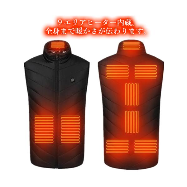 電熱ベスト ヒーターベスト 9エリア発熱 水洗い USB 冬防寒 アウトドア メンズ レディース 男 女 (管理S) 送料無料