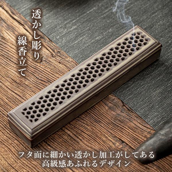 線香立て アンティーク お香立て 横置き 寝かせる 蓋つき アロマ 透かし彫り インテリア 和風 安全 仏壇 香炉皿 (管理S) 送料無料