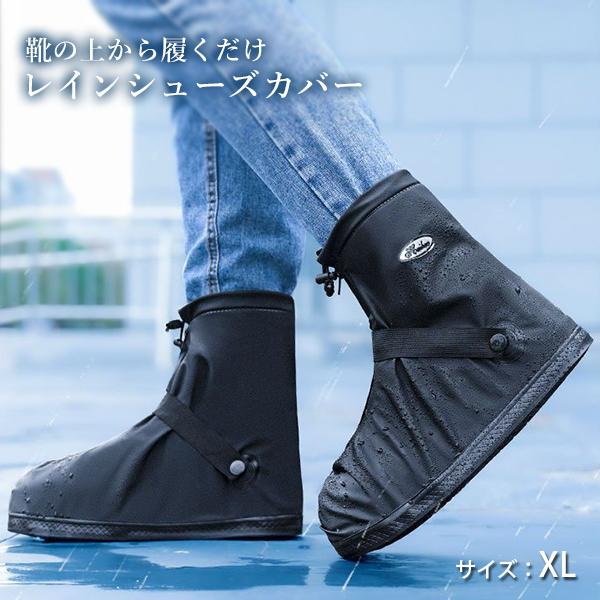 レインシューズカバー 登山 防水 おしゃれ レインシューズ シューズカバー ブラック XL 靴 カバー折りたたみ レインブーツ (管理S) 送料無料