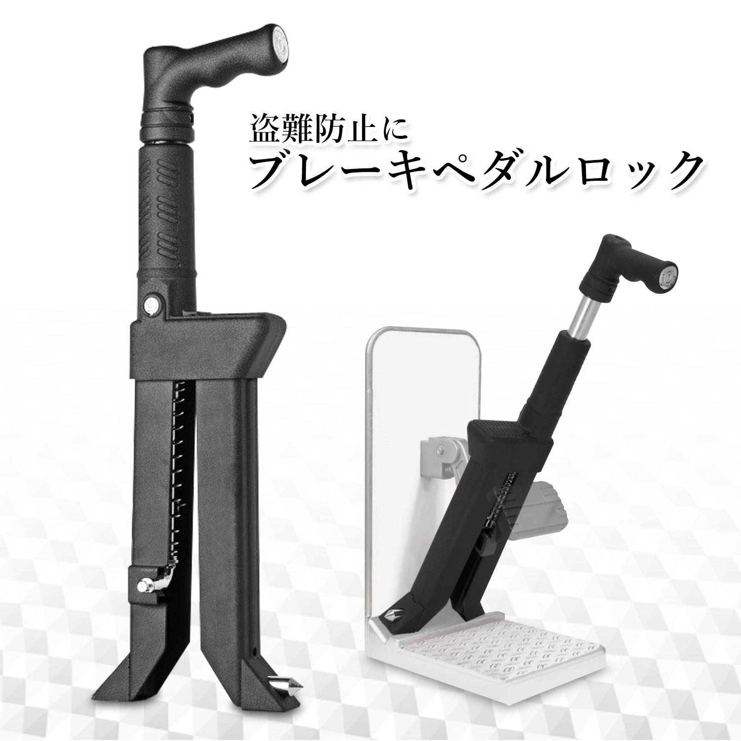 ペダルロック 車 盗難防止 ランクル250 ハイエース 超強力 ブレーキペダルロック ハンドルロック併用可 窓割りハンマー機能付き 専用鍵3本 ブラック(管理S) 送料無料