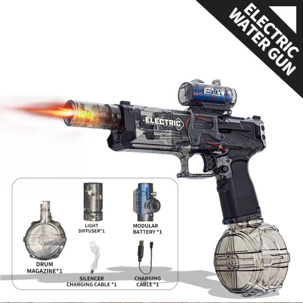 水鉄砲 電動 連射式 ウォーターガン LED灯光噴火バージョン 500ML貯水タンク搭載 水漏れ防止 超強力飛距離 8-10m 大人 子供 兼用 夏祭り 水遊び 海水浴 夏の定番 8歳以上適用 商品説明 【最新電動式LEDウォーターガン】最新デザインで、普通の水鉄砲と違い、電動連射式LED灯光噴火バージョンなので、トリガーを引くだけで水を自動的に発射したり連射したりできます。子供と大人の両方のための面白い水鉄砲で、誕生日やパーティーなど、男の子や女の子へのプレゼントにも最適です。 【電池式水鉄砲】1200mAhの電池で、USBケーブルで充電できます。全自動、トリガーを押すだけで連続発射できます。25 分間の超長時間バッテリー寿命、および 1 つのバッテリー充電時間は 110 分です。 ビーチ、砂浜、プールで家族で楽しみ、友人や家族との交流をお楽しみください。 【大容量貯水タンク搭載】500ML超大容量な水鉄砲です。強力で感度のいい電動連射式でウォーターガンにかなりの威力を与えますので、一瞬、出する水量や飛距離がほかの水てっぽうよりはるかに優れています。商品サイズ(約):35x 29cm 重さ:約500g 【高品質の材料&水漏れがしない】高品質のABSプラスチック製で、気密性が高く、水漏れ防止は抜群。本体は軽く、大人でも子供でも軽く持つことができるため、水合戦もより楽しい。 【夏の定番】子供、大人の夏のおもちゃに最適!庭や、プール、ビーチサンドなど、水撃ショットであろうと水パーティーであろうと、どこでもなんでも楽しめます。 商品仕様 商品名:電動水鉄砲 素材:高品質のABS材料 商品サイズ(約):約35×29cm 重さ:約500g 水タンク容量:500CC カラー:ブラック/ブルー/レッド ご選択いただけます。 注意事項: ※1. 写真を参考に、電池が正しく取り付けられているか確認してください。誤った取り付けをされると水鉄砲 が正しく作動しない。 ※2.電動水鉄砲の貯水タンクを取付ける時、十分に取付けられているかどうかを確認する必要があります。「カチッ」と音が出た場合こそ、取り付け完了です! ※3.電動水鉄砲は防水機能がありますが、完 全に水浸しにしている状態で故障を発生する可能性が高いため、水浸しにしないでください! ※4.スタンダードサイズの水鉄砲は、水タンクを外す際も取り付ける際もタンク脱着ボタンを押した状態で行ってください。取り付けの際にタンク脱着ボタンを押さずに行うと水タンクのパッキンを損傷する場合がございますのでタンク脱着ボタンを押した状態で水タンクを装着し、固定されてからボタンを離すようにしてください。 発送方法 日本郵便:送料無料。 代引きご希望の場合は、別途ゆうパック送料と代引き手数料をいただきますので、ご了承の上、ご利用くださいませ。水鉄砲 電動 連射式 ウォーターガン LED灯光噴火バージョン 500ML貯水タンク搭載 水漏れ防止 超強力飛距離 8-10m 大人 子供 兼用 夏祭り 水遊び 海水浴 夏の定番 8歳以上適用 ミニ水鉄砲 電動 連射式 ウォーターガン LED灯光噴火バージョン 貯水タンク搭載 水漏れ防止 超強力飛距離 6-8m 大人 子供 兼用 夏祭り 水遊び 海水浴 夏の定番 6歳以上適用