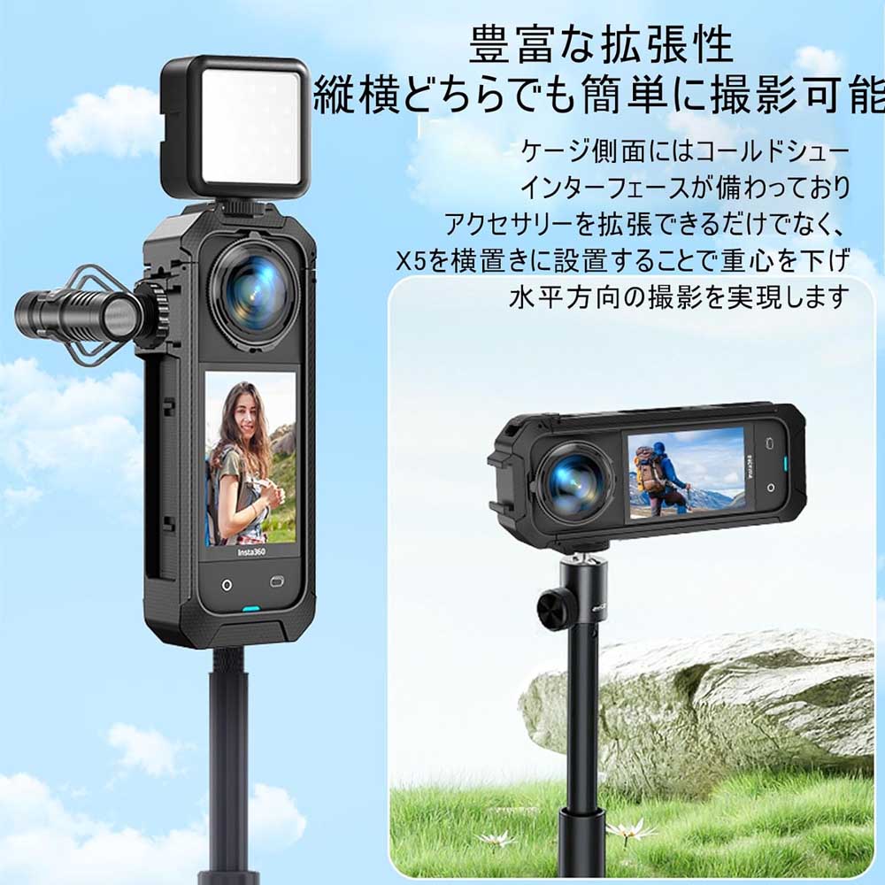 Insta360 X5 対応 フレーム 保護ハウジング ケース バッテリー交換可能 三脚装着 1/4インチネジ穴付き insta360 X5 パノラマカメラアクセサリー 送料無料