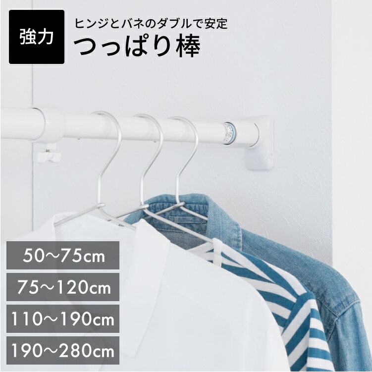 【店長の一言】 すごく安定感のある突っ張り棒です。 「他の「強力」を売りにしている突っ張り棒で、ずり落ちてくるのを心配しながら使っていた・・・」という方!いままでのつっぱり棒とは、かなり違います。お勧めです! ピンや釘は使用しません。道具不要です! 170cm〜280cmまで取り付け可能な、突っ張り棒です。 洗濯機置場やお部屋に突っ張れば、室内物干し竿としても使えます。 梅雨の時期には絶対必要ですね! 最大耐荷重60kg!(170cmの長さで使用時) 最大280cmまで伸ばして使っても17kgの耐荷重です! 強力極太パイプ直径34mm 【店長の一言】 (2本のパイプが重なって伸縮(長さを調整)しますが、パイプの太い方が直径34mm・細い方は30mmです。子供用ハンガーで引っ掛けるのに少しきつい物もあります。一般的なハンガーは使用可能です。) 壁の接面寸法 ・縦:10cm 横:約6.5cmが棒の両端にそれぞれ必要です。 (壁に接する部分にはやわらかい樹脂のクッションが付いているので、壁を傷つける心配がありません。) 材質表示 パイプ・・・鉄:PP樹脂被覆 樹脂部品・・・ABS樹脂・合成ゴム ネジ類・・・鉄製:メッキ仕上 バネ・・・バネ鋼:メッキ仕上 メーカー:平安伸銅工業株式会社 カラー:ホワイト 夜干し・部屋干し・つっぱり物干し 必ず取付け場所を測って、長さの合う商品をお選びください。 ● 特大 170cm〜280cm● ● 大 110cm〜180cm● ● 小 75cm〜110cm● の3タイプがあります。 ※本商品用の大型カーテンリングが新登場。 細身の突っ張り棒で、カーテンレールの代わりをお探しの方は つっぱり便利ポール がオススメ! 横に突っ張るスペースが無い人には、上下に突っ張る ワンタッチステンレス物干しポール がオススメ! 必要なときだけ持ち出して、普段は畳んで片付けられる! ※ご注文頂いたお客様の中でごく少数ですが、設置後「ずれ落ちて来た」というお客様がいらっしゃいます。お話をよく聞いてみると設置場所の壁強度が弱いことが原因のようです。事前に壁を押してみてたわみなどないか確認願います。