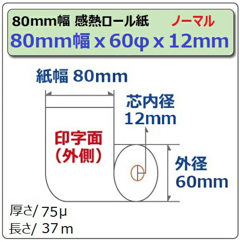 *************************************************** タクシー会社・クリーニング店・病院・学校・図書館・清掃業・飲食店・パチンコ店・ホテル・ネットカフェ・リサイクルショップ・チケットショップ・レンタルショップ等々さまざまな業種、いろいろな場所、お店、用途でご利用いただいてます。 *************************************************** 入り数 60巻入り サイズ 幅80mm×外径60mm×内径12mm 紙の厚さ 75ミクロン 長さ 37m 保存性 ノーマル(製紙メーカー基準:3〜5年保存) ※実験!高保存タイプとノーマルタイプの違いは?※ 包装仕様 3巻毎に黒ポリ包装、1箱60巻入 商品箱サイズ:31.5 x 19.5 x 33.5 cm(W×D×H) 対応プリンタ ※紙幅・サイズは、ご利用中のロール紙とご照合ください。