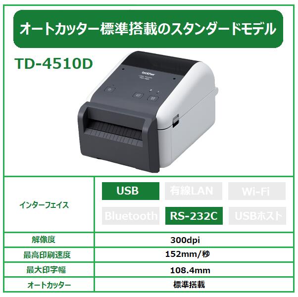 【ブラザー正規代理店】ブラザー 感熱ラベルプリンター TD-4510D (4インチ幅/USB・シリアル/オートカッター/300dpi) 液晶 製造 物流 小売り 医療 食品表示ラベル お薬手帳 検体ラベル 値札ラベル 荷札ラベル ♪