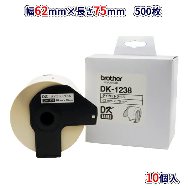 【ブラザー正規代理店】ブラザーDK-1238 10箱セットQLシリーズ用 DKプレカットラベル ラベルロール 食品表示(感熱白テープ/黒字)62mm×75mm 500枚入り