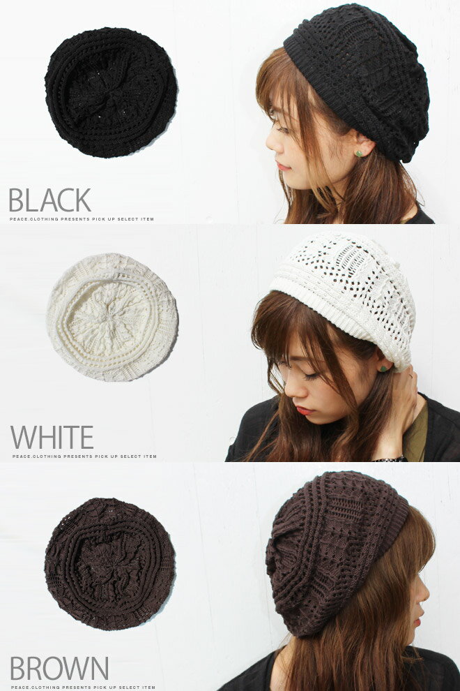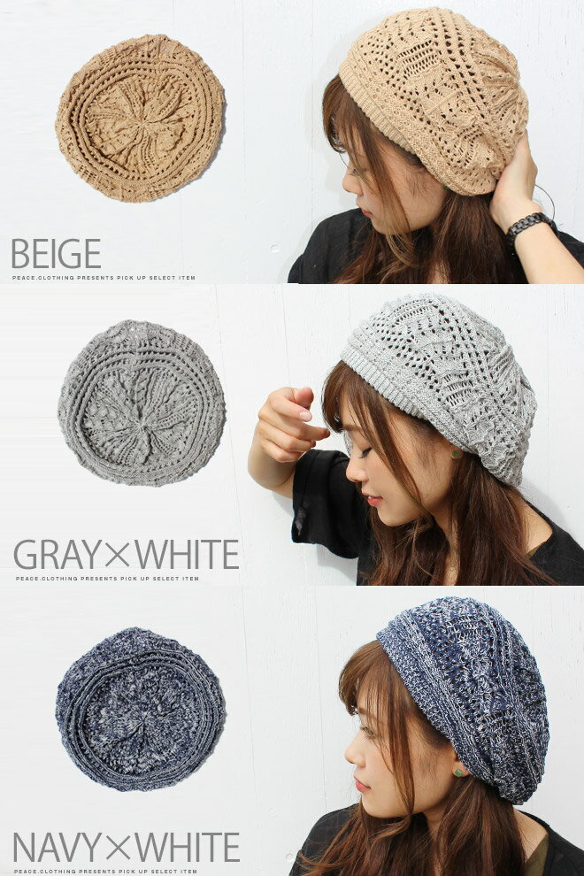 【メール便 可】透かしニット ベレー帽 コットンニットベレー帽 レディス 帽子 可愛い カワイイ シンプル 【レディース/春夏用】◇【S/S】