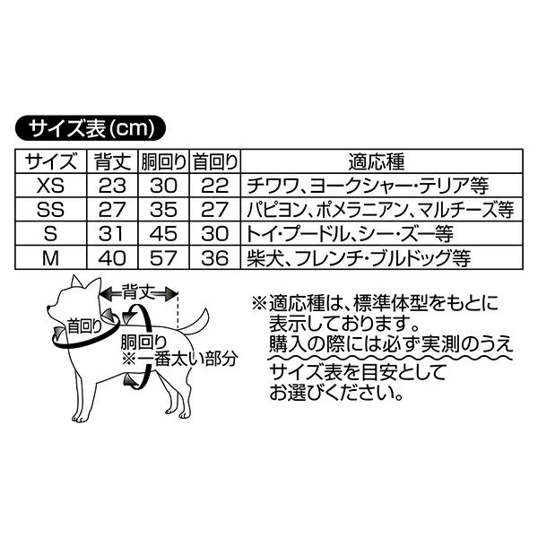 商品説明 全体が伸びる生地で動きやすい!SNS・ブログなどの撮影にもピッタリ!うちの子をかわいく変身させちゃおう! ・リード通し穴付 ・着せやすい前開きスナップボタン ・手洗い可能手洗い可能。 ■材質:本体:ポリエステル、リブ:ポリエステル・コットン・ポリウレタン ■対象ペット種:超小型犬〜小型犬 ■商品サイズ: XS:約背丈23x胴回り30x首回り22(cm) SS:約背丈27x胴回り35x首回り27(cm) S:約背丈31x胴回り45x首回り30(cm) M:約背丈40x胴回り57x首回り36(cm) ※単品注文送料無料 検索キーワード:ペティオ/ヤマヒサ/ドッグ/犬/いぬ/イヌ/ファッション/アイテム/帽子/イベント/撮影会/お散歩/コスプレ/ペット/お洒落グッズ/ウェア/きぐるみ