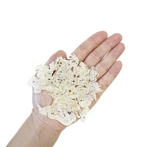 安心・安全な厳選素材を丁寧な処理・製法で仕上げたトリーツシリーズ 新鮮なちりめんを、特殊な温度と圧力で一枚一枚丁寧に花びらのように焼き上げました。 おやつとして、フードや手作り食に加えて…など!幅広く楽しめるシリーズです。 ちりめん 愛媛県宇和海産のちりめん(いわしの稚魚)を使用しています。 食品添加物を一切使用せず、カルシウムたっぷりの素材そのままの、無添加食品です。 減塩タイプですので塩分が気になるペットにもおすすめです。 薄いパフタイプですのでサクッと、素材本来の旨味を味わって頂けます。 1日あたり供与量 体 重 給与量 5kg以下 1g 10kg以下 2g 20kg以下 4g ※ おやつとして与えてください。 必ず目の前で食べさせて下さい。 与える量は、犬猫種・季節・性質・体調によっても異なります。 また、食事量も考慮し、カロリーや愛犬・愛猫の状態に応じて与えて下さい。 スペック 【内容量】6g 【原材料】ちりめん(いわしの稚魚) 【成分及び成分値】 粗蛋白質61.0%以上、粗脂肪6.0%以上、粗繊維質0.5%以下、粗灰分23.0%以下、水分7.0%以下 カロリー:360kcal / 100g 【原産国】日本 【パッケージ形状】チャック付きPP袋 【JANコード】4580210129020 使用上の注意 ・本品はおやつです。主食として与えないでください。 ・喉に詰まらせないように適切な大きさで与えてください。 ・開封後はなるべく早くお与えください。 ・直射日光の当たる場所、高温多湿の場所で保管しないでください。 ・アレルギーのある場合には原材料を確認してから与えてください。