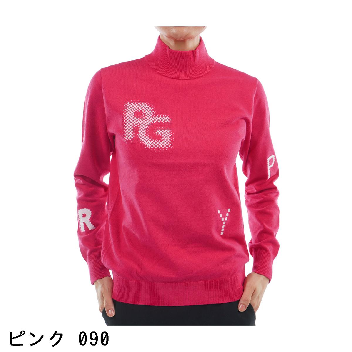 パーリーゲイツ PEARLY GATES 部分ジャカード カシミヤタッチコットン ハイネックセーター レディス