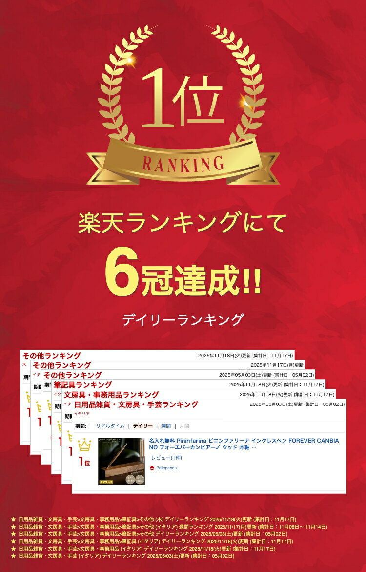 ※こちらの商品は色入れ不可です。 ネーム入れのご注文の場合は「あす楽」対応不可です。 納期は5営業日必要です。 フェラーリ・デイトナやアルファ・ロメオ、マセラッティなどのデザインも手掛けた有名なイタリアのデザイン会社、ピニンファリーナ社とイタリアの文具メーカーの共同制作で生まれたインクレスペン。 デザインコンセプトとして、ピニンファリーナ社の最新コンセプト・カー”カンビアーノ”をイメージした流線型のフォルムスタイル。細身のウッドボティの美しさがシンプルながら、飽きることなく長く使い続けることのできる逸品に仕上がっています。 イタリア製 日本限定50本 【サイズ】 全長:16cm 重量:約37g 【素材】 本体:ウォールナット/ アルミニウム ペン先:合金 【付属品】 専用BOX メーカー保証書 【注意】 お使いのモニターの設定、状況により実際の色とことなって見える場合がございます。 検索キーワード:おしゃれ ギフト プレゼント お祝い 感謝 誕生日 クリスマス 敬老の日 父の日 母の日 ホワイトデー バレンタインデー 入学祝い 就職祝い 退職祝い 記念日 昇進祝い 彼氏 夫 旦那 恋人 お父さん 父 彼女 奥さん 妻 両親 子供 息子 兄 弟 男性 メンズ 男友達 娘 姉 妹 女性 レディース 女友達 同僚 上司 部下 先輩 後輩 自分 10代 20代 30代 40代 50代 60代 70代 ペレペンナ pellepenna 筆記具 デッサン Ethergraf イーサーグラフ topics_men topics_woman topics_hikkigu関連商品名入れ 無料 Pininfarina ピニンファリーナ ボールペン C...Pininfarina ピニンファリーナ インクレスペン スピードフォ...ピニンファリーナ インクレスペン デスクペン レオナルドダヴィンチ 没...26,400円27,500円38,500円名入れ無料 Pininfarina ピニンファリーナ ボールペン CA...RakutenスーパーSALE Pininfarina ピニンファリー...RakutenスーパーSALE Pininfarina segno ピ...19,800円11,000円8,250円RakutenスーパーSALE ピニンファリーナ インクレスペン AE...限定 Pininfarina segno ピニンファリーナ・セーニョ ...名入れ無料 Pininfarina ピニンファリーナ インクレスペン ...12,650円52,800円19,800円パーカー 万年筆 ソネット 名入れ ギフト プレゼント 高級 ブランド...【替芯1本プレゼント】 FISHER SPACEPEN フィッシャース...【替芯1本プレゼント】FISHER SPACEPEN フィッシャースペ...27,500円16,500円6,600円詳しい名入れ内容はこちらから ご注文方法についてはこちらから 納品書同梱廃止のご協力とお願い 当店では、環境への配慮及び、お客様の個人情報保護の取り組みのため、 納品書(お買上明細書)は同梱いたしておりません。 商品明細につきましては、ご注文完了メール またはマイページの「購入履歴」より ご確認頂けますようお願い致します。 <納品書をご希望のお客様> 「注文内容の確認」備考欄の【】内に 〇を記載ください。 <領収書をご希望のお客様> 商品発送後、楽天市場にてお支払いが確定となりましたら、電子領収書としてPDF形式で発行することができます。 宛名・但書は空欄で出力されますので、印刷後にご記入ください。 ※楽天会員様の場合 購入履歴より領収書を発行することができます。 ※楽天非会員様の場合 ご注文内容確認ページより領収書を発行することができます。 詳細は楽天市場ヘルプページ「領収書について」をご確認ください。 楽天市場ヘルプページ