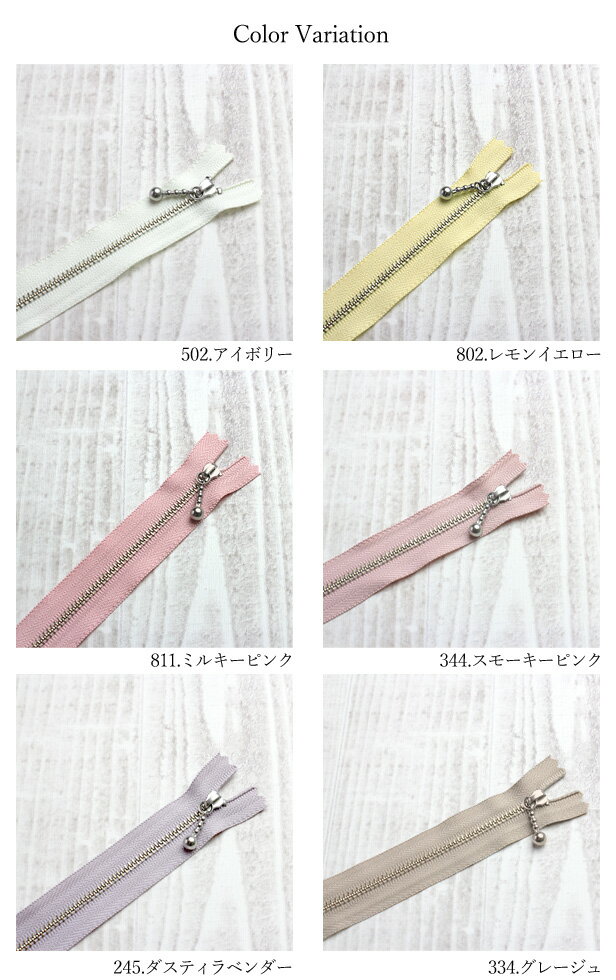 シルバー玉付きくすみカラーファスナー 20cm(3MNC)YKK 10色 日本製(ファスナー 銀 ジップ ジッパー チャック ボールチェーン ポーチ ニュアンスカラー おしゃれ ハンドメイド 手芸 )【メール便OK】