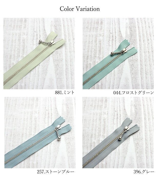 【ご購入の前に】※アパレルメーカーへの生地販売を致しておりますので、タイムラグにより画面上在庫があるようになっていても在庫が無い場合がございます。その際にはメールでお知らせします。 ※長尺でのご注文の場合、続けてご用意できない場合がございます。その場合はメールでご案内いたします。 ※生地のカラー名につきましては、当店独自のものになります。メーカーや他店と表記が違う場合がございます。 ※入荷ロットにより、同じ商品でも色味や質感が異なる場合がございます。メーカーの許容範囲で取り扱っておりますのでご了承ください。★同じ色味の14cmファスナーはこちらで販売中 ★ゴールド玉付きファスナーはこちら YKK シルバー玉付きファスナー 20cm(3MNC) 小物づくりに大活躍の20cmファスナーです。 人気のくすみカラーに引き手のボールチェーンは上品なシルバーで、洗練された雰囲気に。 ポーチやミニバッグ、ペンケース、ポケットなどに。 ファスナーの色をアクセントにしても素敵です。 商品詳細 品番 KO-307 品名 YKK シルバー玉付きファスナー 20cm(3MNC) 素材 テープ部分:ポリエステル 100%チェーン部分:真鍮合金 スライダー部分:亜鉛合金 サイズ 20cm 1単位 1本 ※表記しております価格は1本あたりのお値段です。ご希望数量をご入力ください。 カラー アイボリー(502)、レモンイエロー(802)、ミルキーピンク(811)、スモーキーピンク(344)、ダスティラベンダー(245)、グレージュ(334)、ミント(881)、フロストグリーン(044)、ストーンブルー(257)、グレー(396) 注意 素材感や色合いの表現には個人差があり、環境により色合いが異なる場合がありますので、ご了承の上ご注文お願い致します。 商用利用 可 ※メール便は50本までご利用いただけます。