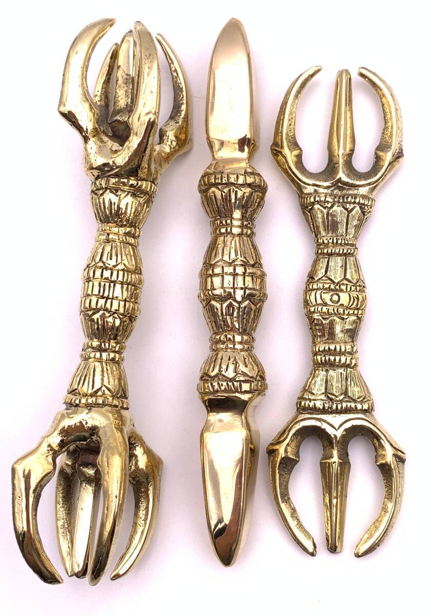 ◆チベット密教法具金剛杵セット◆独鈷杵&三鈷杵&五鈷杵◆ゴールド