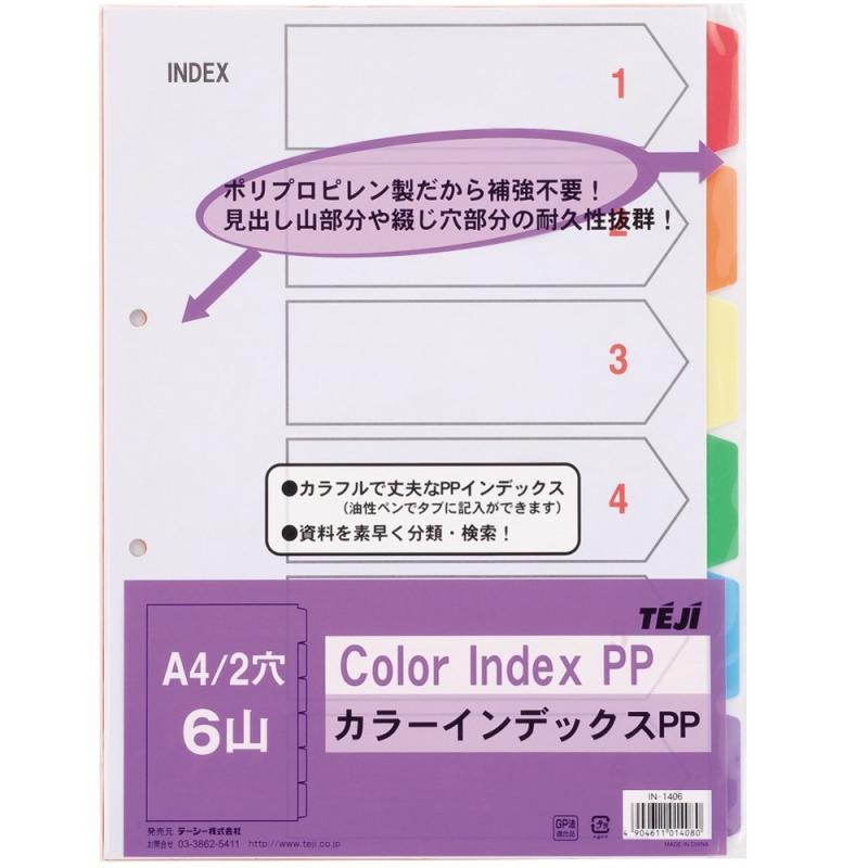 商品説明 ●書類検索の効率アップ ●分類しやすい5分割、しかも5色で色分けができます。 ●とじ穴間隔/80mmピッチ ●コクヨチューブファイル・Kファイル・Tファイル・リングファイルなどとセットでお使いください。 ●5山見出し・インデックスに再生紙を使用しています。 商品仕様 サイズ:A5-E 外寸法(タテ・ヨコ):148・210(+10) 入り数:10組 ●再生材配合率/カラー仕切りカード・インデックス:古紙パルプ配合率50% ●穴数/2穴(丸穴) ●とじ穴間隔/80mmピッチ ●1組/5山見出し+インデックス ●仕切カード/古紙パルプ配合 ●寸法中の( )内は、見出し高さを表します。