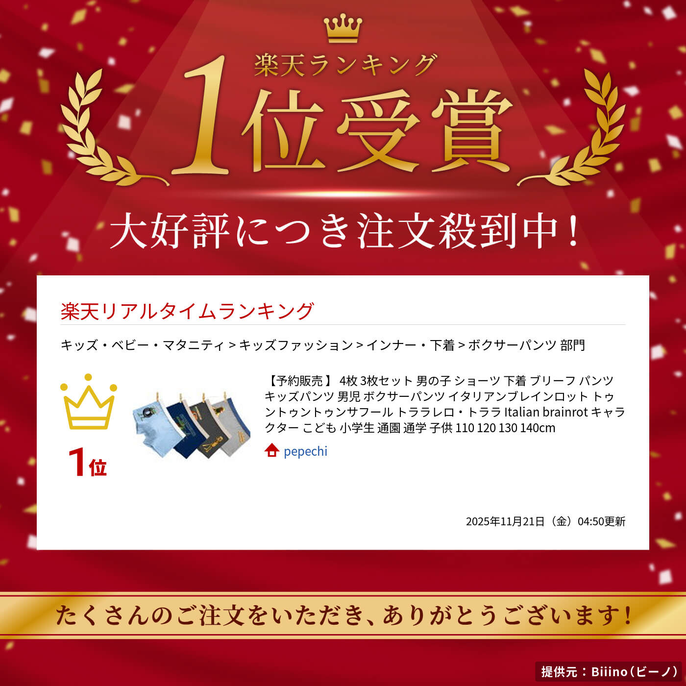 【予約販売 】 4枚 3枚セット 男の子 ショーツ 下着 ブリーフ パンツ キッズパンツ 男児 ボクサーパンツ イタリアンブレインロット トゥントゥントゥンサフール トララレロ・トララ Italian brainrot キャラクター こども 小学生 通園 通学 子供 110 120 130 140cm