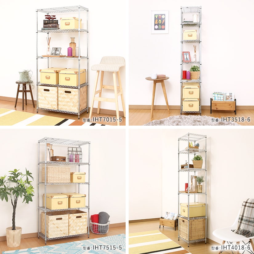 [19mm] ルミナス スチールシェルフ スチールラック 幅75 奥行40 パーツ 幅74.5×奥行39.5cm 商品仕様 商品シリーズ [19mm] ルミナス ライトスチールシェルフ 幅74.5×奥行39.5cm 外形寸法 幅74.5×奥行39.5cm シェルフ内寸 幅68×奥行33cm 耐荷重 棚板(1枚あたり):150kg 重量お問合せ下さい。 内容明細 棚板×1枚スリーブ(棚取り付け用部品)×4個 材質 スチール(クロームメッキ)※クリアコーティング(防サビ加工)スリーブ:ABS樹脂 ポール径 19mm 型番 ST7540 JANコード 4962458267342 メーカー 株式会社ドウシシャ 使用上のご注意 当店で取り扱っております 「ドウシシャ製 ルミナススチールラックシリーズ」 につきましては 他メーカーのラック(メタル製ラック・メタルシェルフ・エレクター(ERECTA)等)には互換性はございません。 特にお手持ちのラックからの追加購入やパーツ付け足しの際には各メーカーご確認の上ご購入下さい。 主な他メーカーのスチールラック 例)アイリスオーヤマ: エレクター:エレクター・ホームエレクター/YAMAZEN 山善・ヤマゼン:メタルシェルフ/ニトリ:スチールシェルフ など) インフォメーション 複数便配送について 商品によって出荷される倉庫が異なるため、一度に複数の商品をご購入いただいたお客様には、商品ごとのお届けが別便となる場合があります。