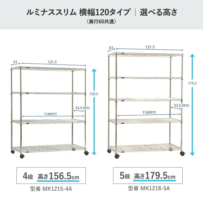 \P10倍期間中/ スチールラック ルミナス ラック 送料無料 [25mm]スリム 幅120 奥行60 高さ180 高さ155 4段 5段 キャスター付 幅121.5×奥行61 スチールシェルフ MK1218-5A MK1215-4A