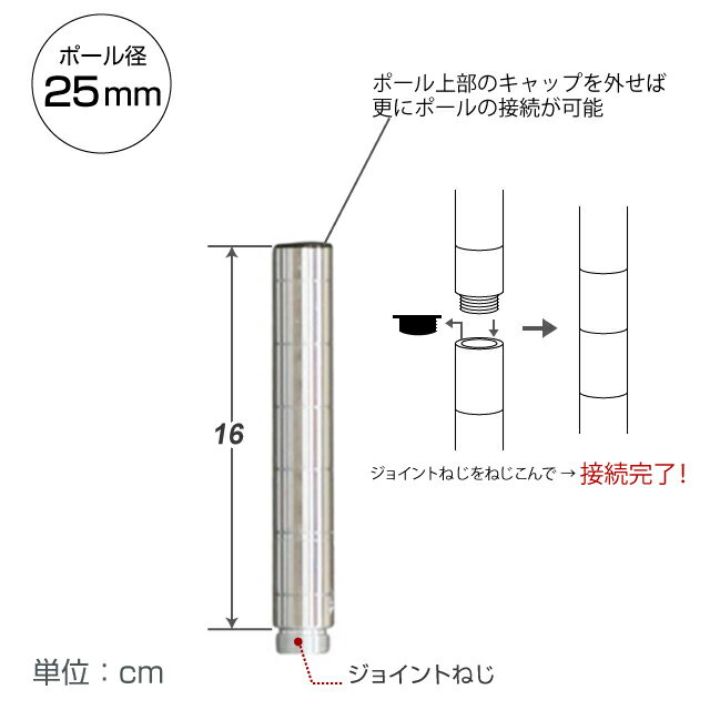 ★スーパーSALE★P10倍★ スチールラック ルミナス ラック [25mm] 延長ポール 長さ16cm 4本 パーツ 長さ16cm ADD-P2515-2