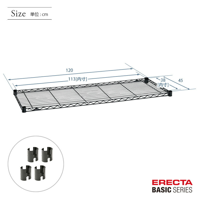 スチールラック カラーラック 収納 収納棚 業務用 エレクター ラック ベーシックシリーズ ブラック 幅120×奥行45cm ERECTA パーツ 送料無料 B1848B1
