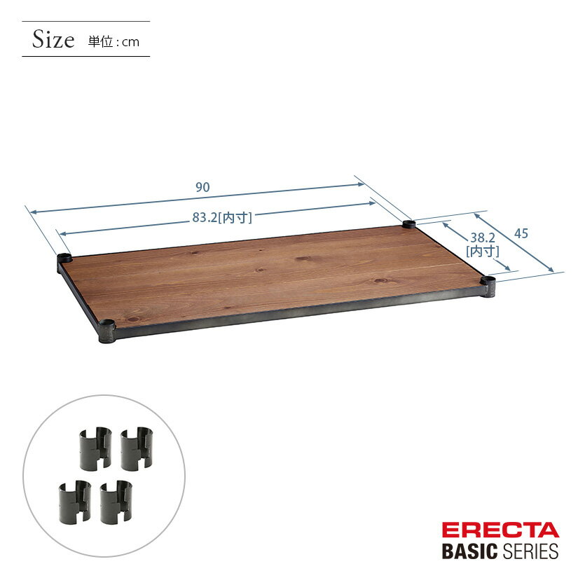 商品仕様 商品シリーズ ベーシックシリーズ ヴィンテージエディション ウッドシェルフ ラギッドシダー 幅90×奥行45cm B1836VWRS1 パーツ 外形寸法 幅90×奥行45cm シェルフ内寸(約) 幅83×奥行38cm 耐荷重 100/棚1段 ※垂直荷重(等分布) 内容明細 ウッドシェルフ1枚、テーパードスリーブ4組 材質 木天板:杉 無垢材20厚 古木風塗装 フレーム:スチール(エイジング塗装仕上げ)、テーパードスリーブ4組(ABS樹脂・ブラック ヴィンテージ専用テーパー) 備考 モデルチェンジ前のホームエレクターはベーシックシリーズと同じモジュールで構成されており、互換性があります。ホームエレクターご使用の方で、追加購入をご希望の方は同サイズをお求めください。 ※掲載画像のコーナリングの刻印、プレートはモデルチェンジ前のデザインになります。ベーシックシリーズはデザインが変更されております為、予めご了承くださいませ。 型番 B1836VWRS1 JANコード 4933315132110 メーカー エレクター株式会社