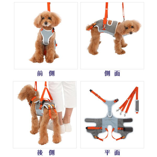 歩行補助ハーネス ララウォーク グレー×オレンジ【 小型犬・ダックス用 】LaLaWalk 犬 介護 株式会社トンボ