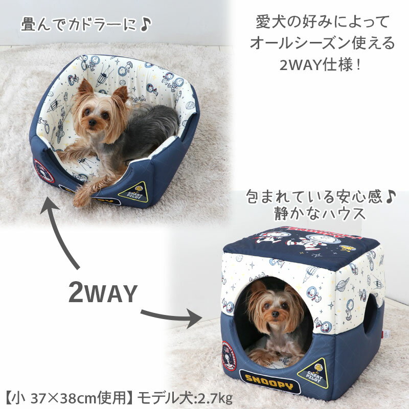 【880円OFF】スヌーピー 犬 ベッド ドーム ハウス 犬小屋 室内 四角 クッション 付き アストロ柄 2wayハウス 超小型犬 小型犬 | カドラー あったか ペット ベット かわいい おしゃれ 可愛い 介護 ペットハウス