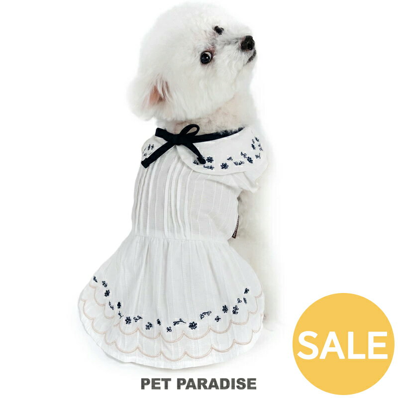 ☆犬 夏服 犬 服 エンブロイダリー ワンピース 小型犬 | 花 刺繍 リボン 襟 フリル 袖 おしゃれ かわいい 可愛い 夏